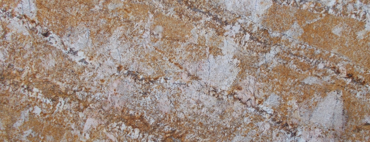 Гранит Madura Gold-красивый и экзотический природный камень, добываемый в районе Мадурай в штате Тамилнад, Индия. Он знаменит своими яркими золотистыми и желтыми оттенками, которые придают ему теплую и привлекательную красоту. Название «мадурайское золото» связано с золотистыми тонами гранита, которые часто ассоциируются с яркими цветами, связанными с золотом. В зависимости от месторождения, камень может несколько отличаться по внешнему виду. Так, одна партия желтого гранита Мадура Голд, почти золотая, иногда с бежевыми полосами. Следующая партия может быть почти бронзовой с коричневыми или оранжевыми вкраплениями. Основной цвет индийского солнечного камня - от светло- до средне-золотистого, варьирующегося по интенсивности и глубине. Сложные оттенки бежевого, коричневого и золотистого смешиваются между собой, создавая пленительную визуальную привлекательность. Камень известен своими сложными узорами и прожилками, которые варьируются от едва заметных до отчетливых. Они делают каждую гранитную плиту уникальной.