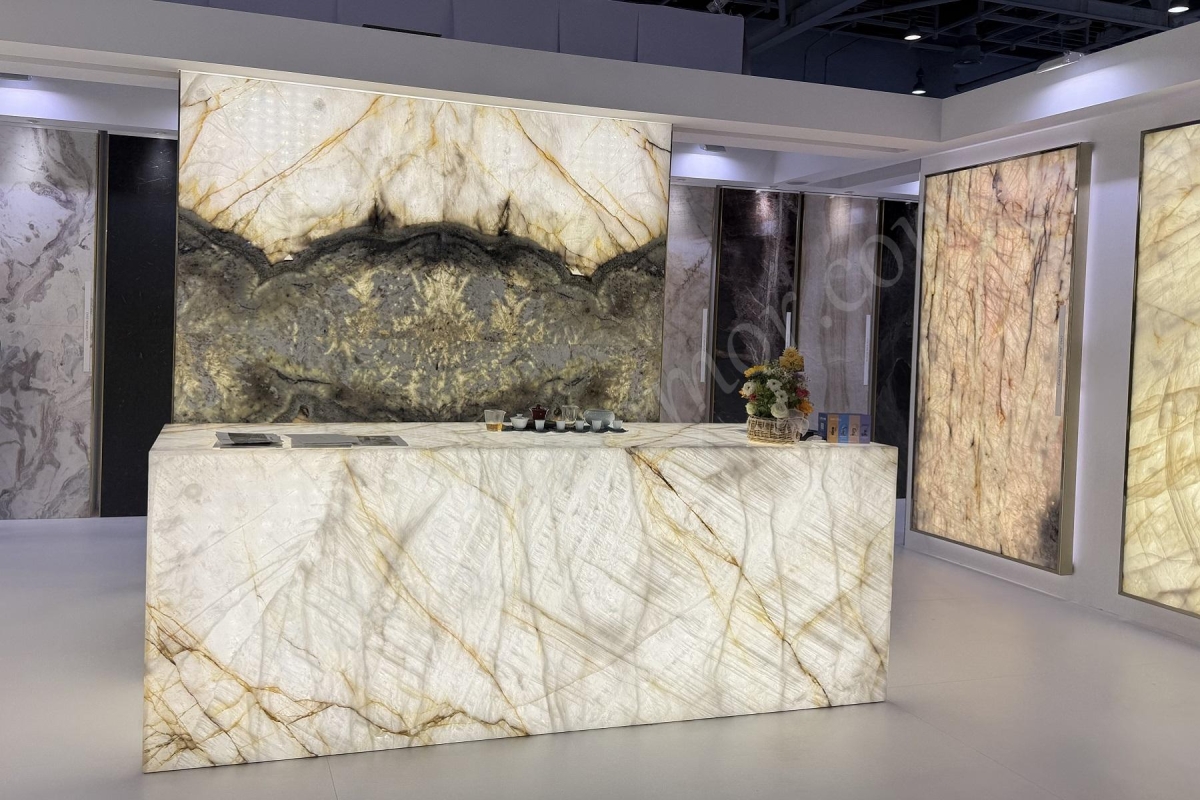 Особенно оригинально смотрится применение подсветки в изделиях с ониксом. Он ценится не только за рисунок, но и прозрачность. Это могут быть настенные панно, столешницы и всё что угодно.